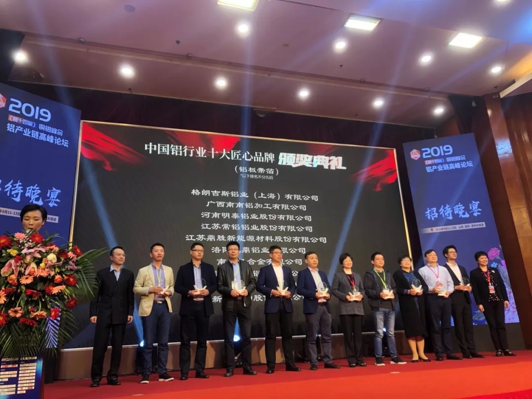 南山輕合金公司榮獲“2018年度中國鋁板帶箔十大匠心品牌”