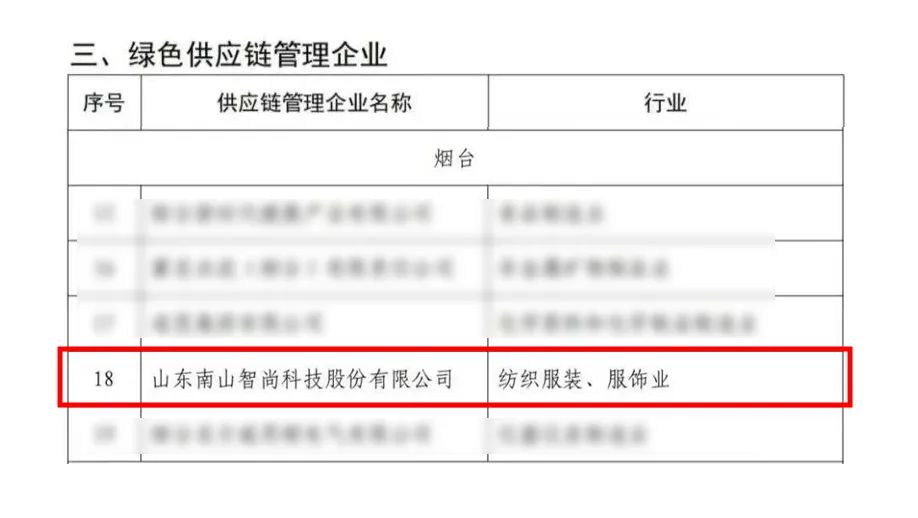 7月28日,山東省工業(yè)和信息化廳公布了2023年省級綠色制造企業(yè)名單,南山智尚成功獲批綠色供應鏈管理企業(yè)認證。