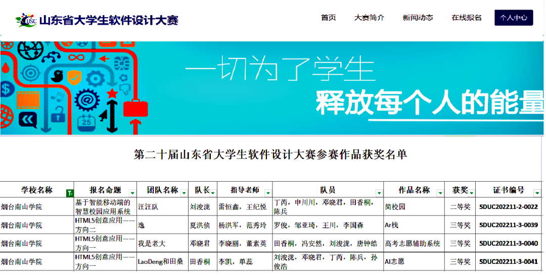 煙臺南山學院學子在第二十屆山東省大學生軟件設計大賽中喜獲佳績