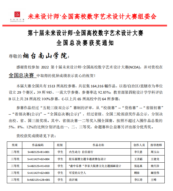 煙臺南山學(xué)院師生在第十屆全國高校數(shù)字藝術(shù)設(shè)計大賽再創(chuàng)佳績