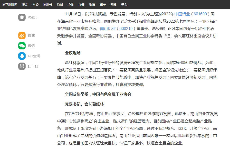 同花順財經:南山鋁業(yè)董事長呂正風出席2022泛太平洋鋁業(yè)高峰論壇并發(fā)表講話