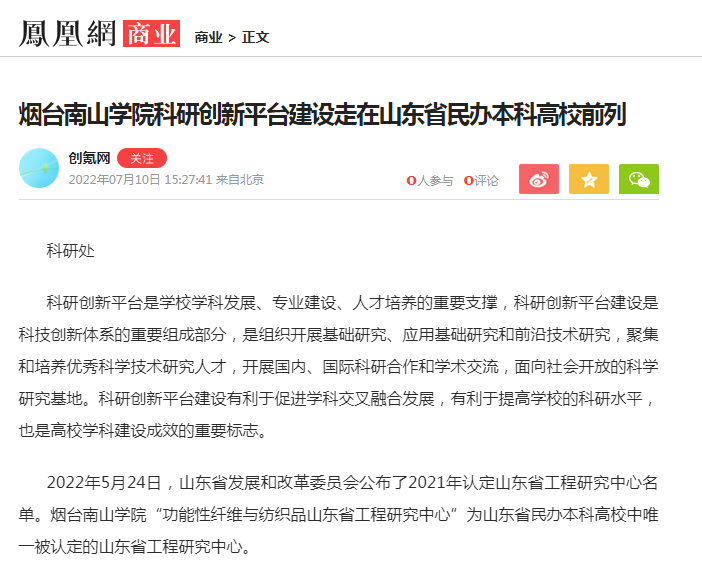 煙臺(tái)南山學(xué)院科研創(chuàng)新平臺(tái)建設(shè)走在山東省 民辦本科高校前列-鳳凰網(wǎng)