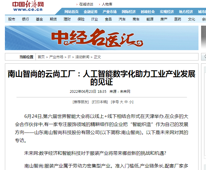 6月24日,第六屆世界智能大會將以線上+線下相結(jié)合形式在天津舉辦,在眾多的大會合作伙伴中,有一家專注服飾領(lǐng)域的精耕細作的企業(yè)把“智能織造”作為自己的發(fā)展方向——山東南山智尚科技股份有限公司(以下簡稱:南山智尚)。以下是未來網(wǎng)對其的專訪。