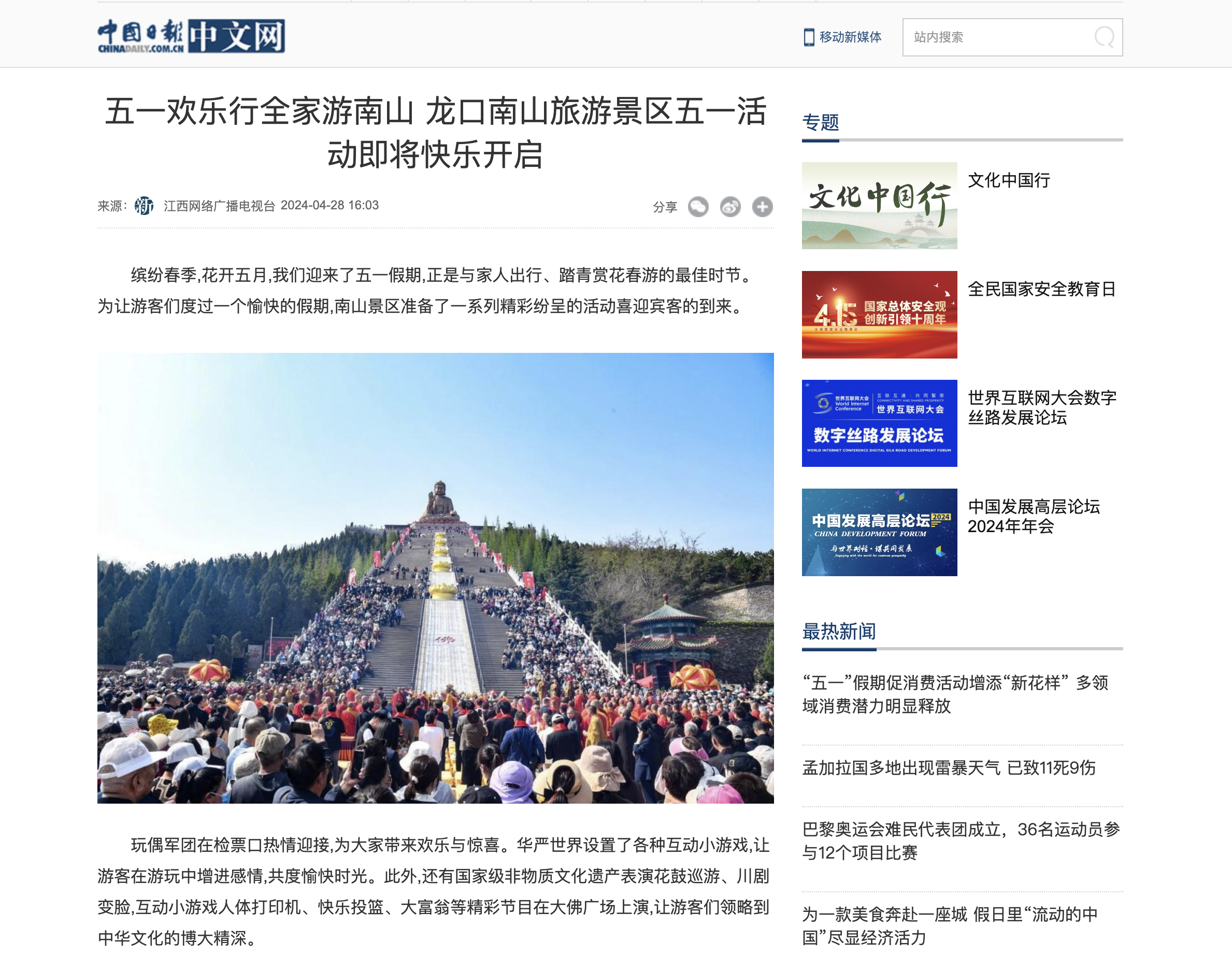 中國日報:龍口南山旅游景區(qū)五一活動即將快樂開啟