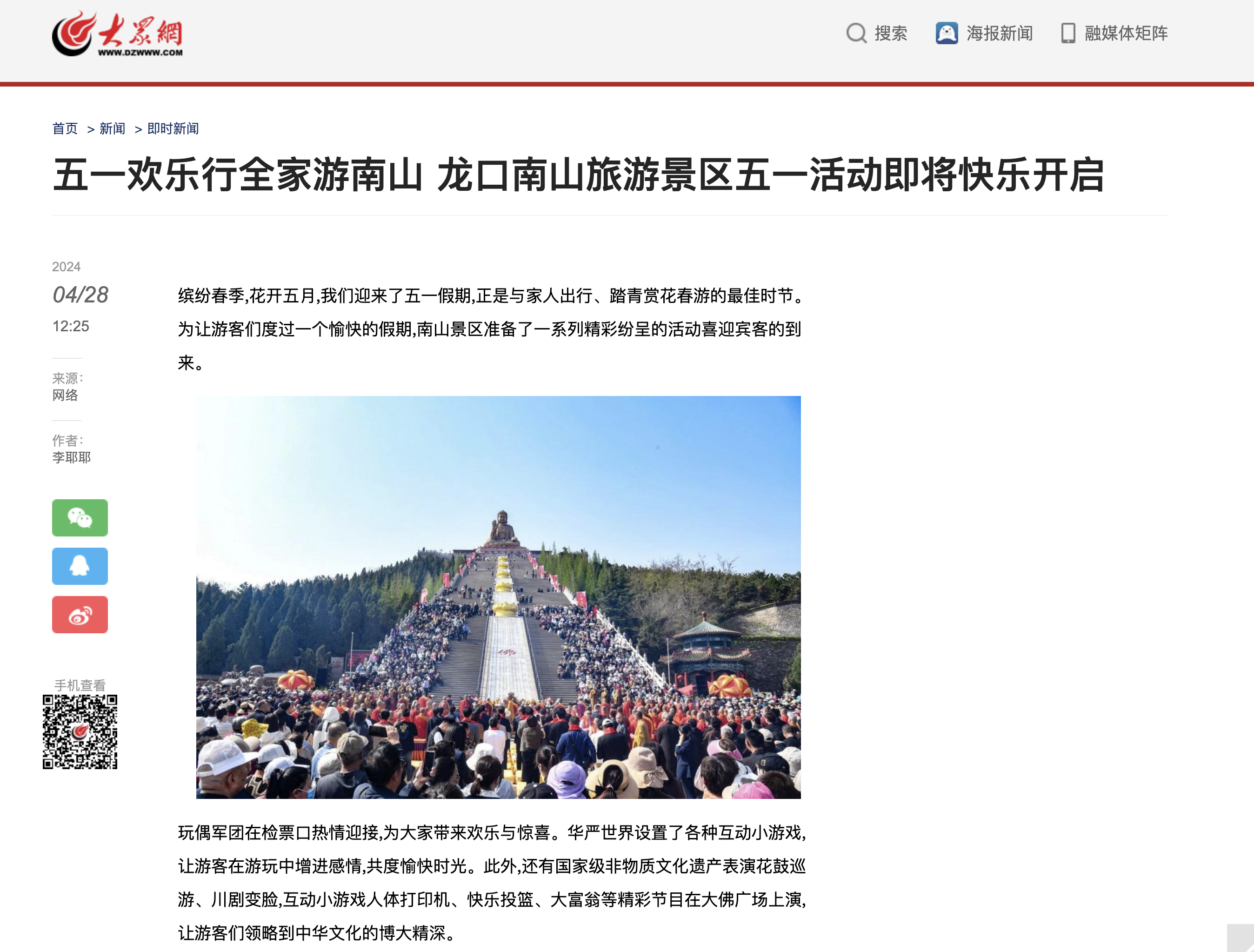 大眾網(wǎng):龍口南山旅游景區(qū)五一活動即將快樂開啟