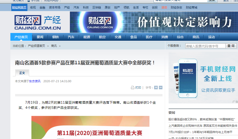 南山名酒薈5款參賽產品在第11屆亞洲葡萄酒質量大賽中全部獲獎!-財經網