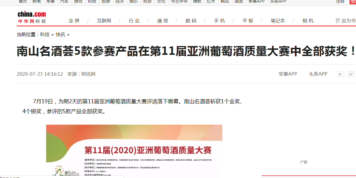 南山名酒薈5款參賽產品在第11屆亞洲葡萄酒質量大賽中全部獲獎!-中華網