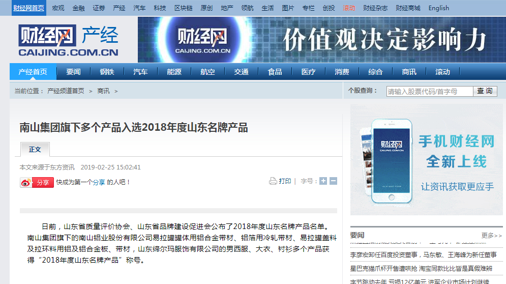 南山集團(tuán)旗下多個產(chǎn)品入選2018年度山東名牌產(chǎn)品-財(cái)經(jīng)
