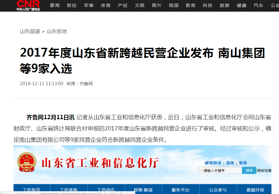2017年度山東省新跨越民營企業(yè)發(fā)布 南山集團等9家入選-央廣網(wǎng)