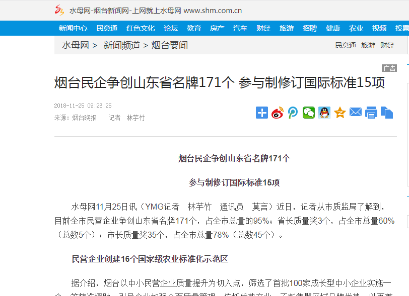 煙臺民企爭創(chuàng)山東省名牌171個 參與制修訂國際標準15項-水母網(wǎng)