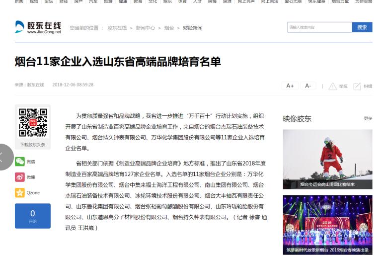 煙臺11家企業(yè)入選山東省高端品牌培育名單-膠東在線