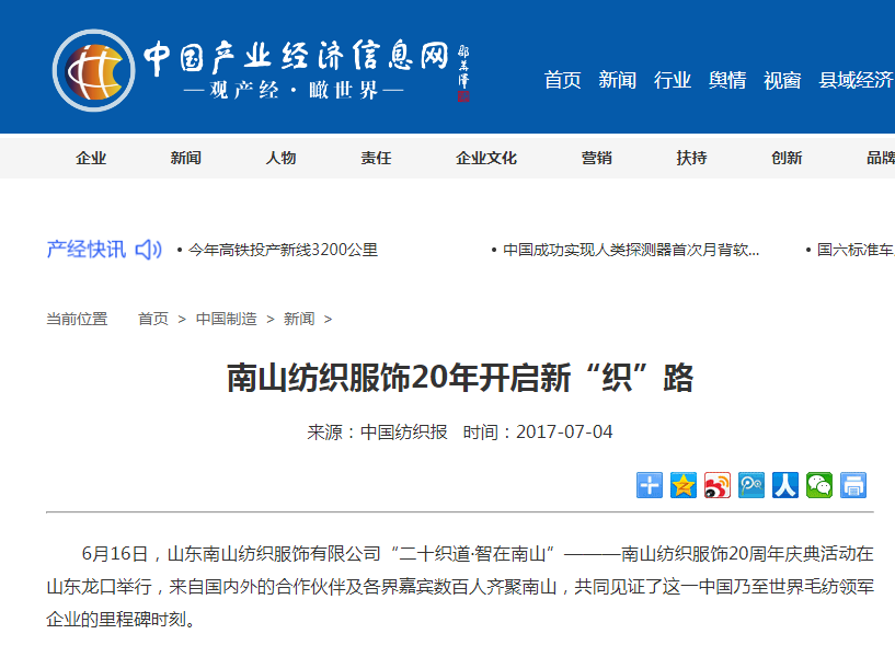 南山紡織服飾20年開啟新“織”路-中國產(chǎn)經(jīng)信息網(wǎng)